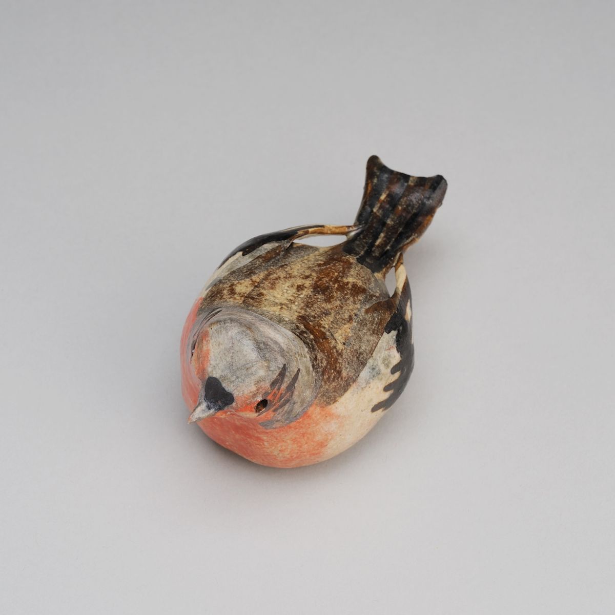 With head slightly cocked and sitting upright, the chaffinch's detailed markings are recreated by hand painting.